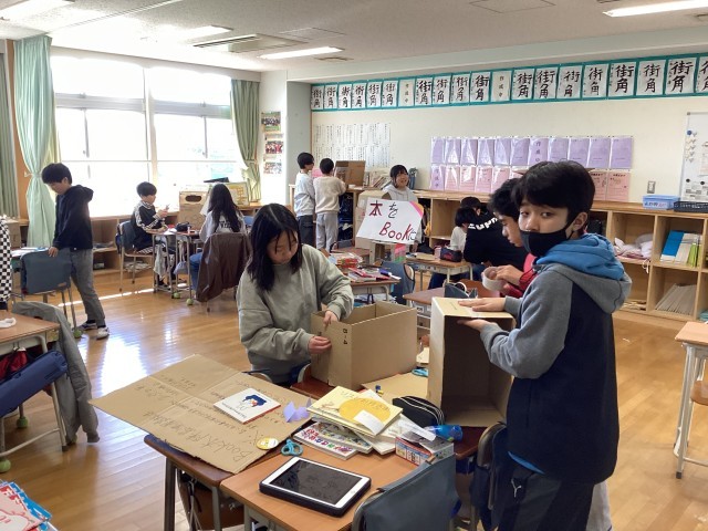 キャリア教育として学習した「ブックオフ」の方のゲストティーチャーの授業を受け、今度は、自分たちで古本屋をつくっていく活動に取り組んでいました。