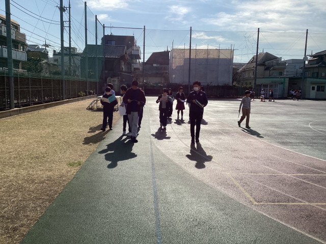 6年生は、にこにこ班の計画書のファイルを引き渡し、5年生は、にこにこ班メンバーからの感謝のお手紙を6年生に手渡します。