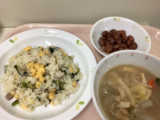 献立 青菜のチャーハン すいとん 金時煮豆 牛乳