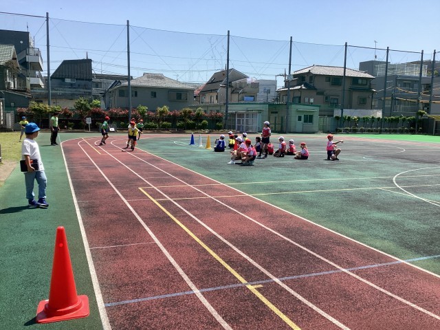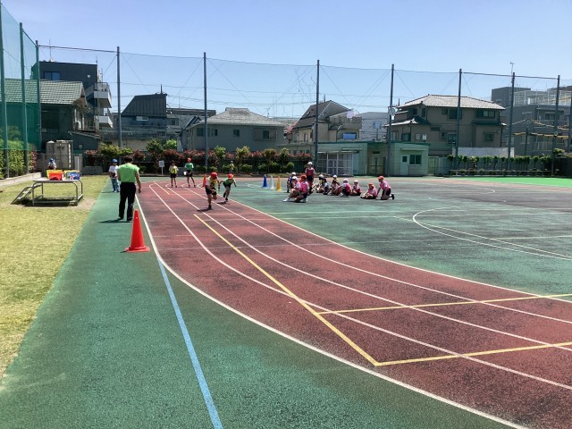 バトンの受け渡しを丁寧に練習したのち、実戦形式でリレー走を行いました。