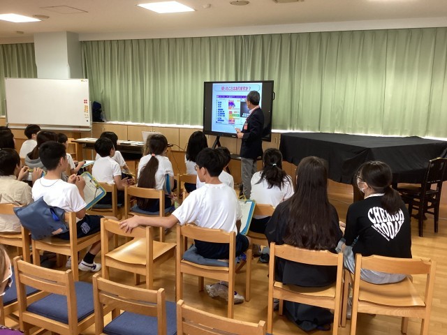 インターネットでつながる便利さと、そこに潜む危険について、株式会社教育ネットの方に授業をしていただきました。昨今、オンラインゲームを通して知り合った間柄での犯罪事件や、闇バイトへの加担、連れ去り等、インターネットに関わる問題が顕在化しています。子どもたちの安全を守る価値ある時間となりました。
