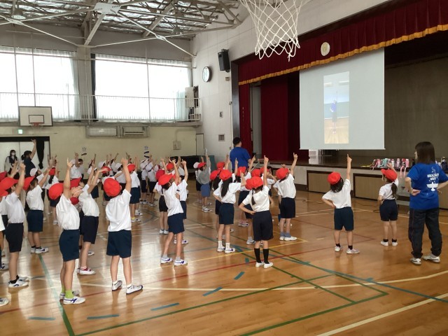 1・2年生は、担当の先生が撮ったお手本の動画を見ながら、見よう見まねで踊っていました。