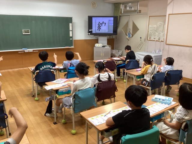 それに沿って、子どもたちは指で「そら書き」していきます。