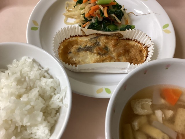 献立 ごはん タラの味噌マヨ焼き 野菜のからしあえ