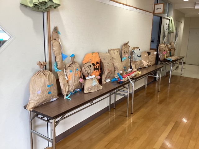 ホッとできる自分の「お友だち」を新聞紙などを詰め込んで作っていきます。