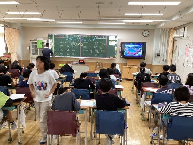 1時間目は、スポーツフェスタの振り返りをしているクラスが多かったです。