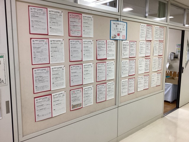 スポーツフェスタ前のめあてと、事後の振り返りがセットになって掲示されています。