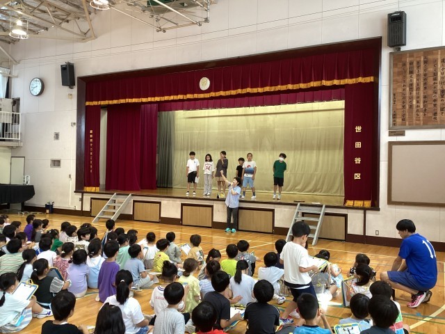 児童集会がありました。「サインをもらおう集会」で、お互いにクラスと名前など会話を交わしてサインを交換してしていました。