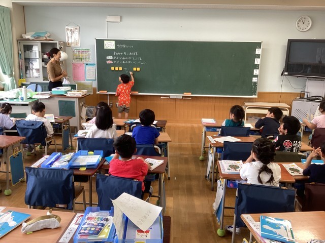 ブロックを使いながら、引き算の考え方をみんなの前で発表していました。