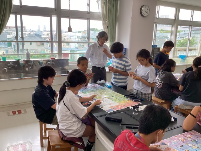 後半は、科学トランプで、「七並べ」を行いました。元素周期表に沿って、カードを並べていきます。