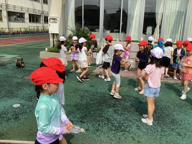 みんな目をキラキラさせて、水で遊んでいました。