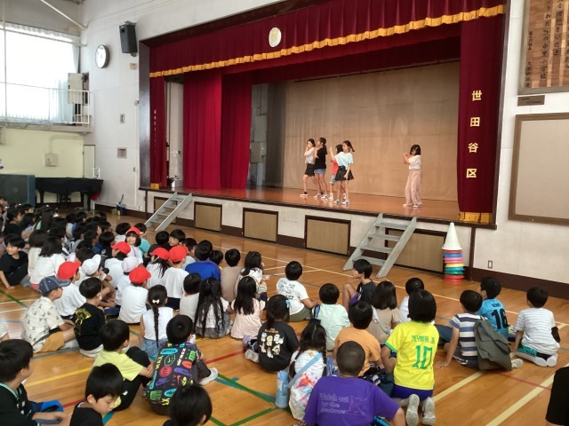 中休みに体育館で、ダンスクラブの発表会がありました。