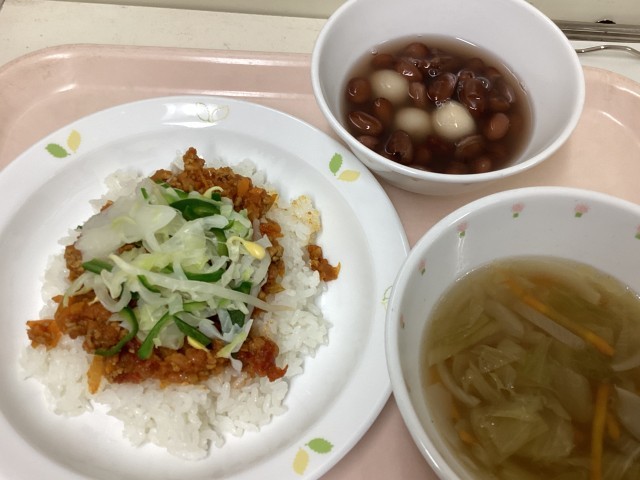 献立 タコライス レタスのスープ 沖縄しるこ 牛乳