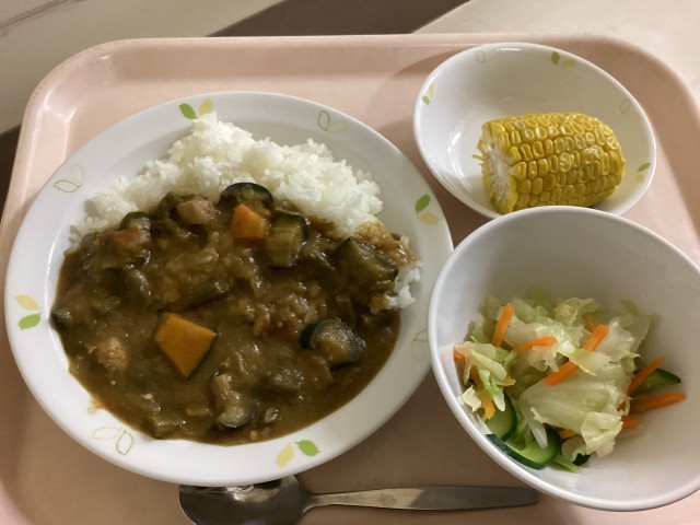 献立 夏野菜カレー 即席漬け とうもろこし 牛乳