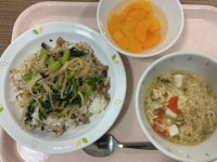 献立 キムタクごはん 春雨スープ 和風おさつサラダ 牛乳 今日は中里小の姉妹校 ...