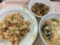 献立 たこ飯 五目煮豆 白玉スープ 牛乳 今日はたこの料理がたべたい!とのリクエ...