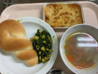 献立 ツイストパン ほうれん草のソテー シェパーズパイ スコッチブロス 牛乳今日...