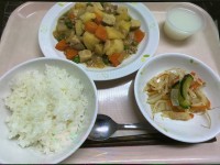 献立 ごはん 肉じゃがうま煮 こんにゃくサラダ ホワイトゼリー 牛乳 給食のこん...