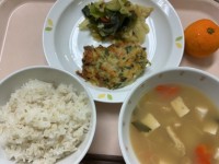 献立 ごはん 手作りさつまあげ 千草あえ 豆乳入りかぼちゃの味噌汁 牛乳 今日は...