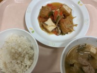 献立 有機栽培米(ミルキークイーン) 家常豆腐 いわしのつみれ汁 牛乳 今日は月...