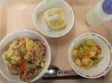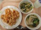 献立 キムチチャーハン ワンタンスープ じゃこサラダ 牛乳 米(秋田) 鶏肉(...