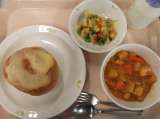 献立 きなこ揚げパン じゃがいものポタージュ かんてんサラダ 牛乳 鶏肉(岩手...
