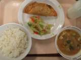 献立 帆立の炊きこみご飯 石狩汁 揚げ出し豆腐 牛乳 米(秋田) 鮭(北海道、...