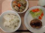 献立 ご飯 むろアジのメンチカツ ひとしお野菜 大根の炒め煮 牛乳 にんにく ...