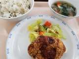 献立 わかめごはん コロッケ ゆできゃべつ 根菜スープ ...