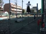 今日から校舎北側の土校庭の仮囲いを広げる工事が始まりました。いよいよ新校舎の建設...