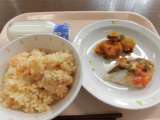 献立 こぎつねごはん かきたま汁 大根の土佐漬け きなこもち 牛乳 米 ...