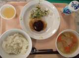 献立 ごはん かぼちゃコロッケ 野菜のゆかり和え 呉汁 ゆずゼリー ジョア 豚...