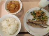 献立 ごはん ししゃもの唐揚げ 野菜のポン酢和え 大根のべっこう煮 牛乳 米(...