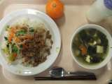 献立 ビビンバ わかめスープ みかん 牛乳 米(秋田) とり肉(岩手) わかめ...