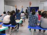 「不思議! 放送体験」の様子です。集合ショットの撮影や様々な放送技術について学び...