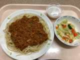 献立 ミートソーススパゲティ ゆきんこサラダ 赤と白のクリスマスゼリ...