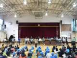 2/19(月)、全校朝会で「太子堂こどもマラソン大会」と読書感想文コンクールの表...