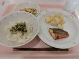 献立 ごはん ふりかけ 魚(さば)の和風ソース コクうま粉ふき芋 煮びたし...