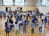 26日(金)の2時間目、1年2組と2年1組は生活科の時間でした。体育館で「昔遊...