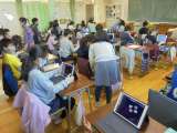 2年生は、今回の遊びに向けてコーナー名や遊び方を画用紙に書いたり、説明の練習を...