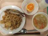 献立 そばめし ししゃものから揚げ 白菜のスープ 牛乳 玉ねぎ(北海道) にん...