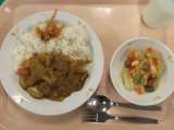 献立 カレーライス 福神漬け 豆のサラダ 牛乳 米(秋田) にんにく、豚肉(青...