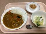 献立 かぼちゃ入りカレーライス いかと野菜のガーリック和え イチゴの...