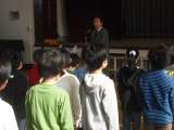 今日4月27日は、中里小学校の開校記念日です。朝の時間を利用して、校長の話、児童...