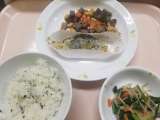 献立 わかめごはん 鰆のパン粉焼き おひたし 五目煮豆 ...