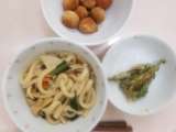 献立 肉うどん わかさぎの磯部揚げ 3色団子 牛乳 今日は昨年度...