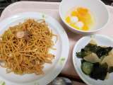 献立 塩焼きそば 大根とわかめの酢の物 フルーツ白玉 牛乳 ...