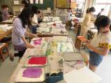 思い思いにローラーをかけると、思わぬ色彩が現れ、一気に芸術的な作品に様変わり!