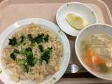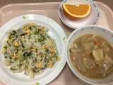 献立 青菜のチャーハン すいとん 八朔 牛乳 学校のチャー...