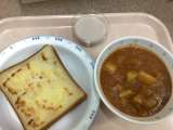 献立 チーズトースト トマトシチュー いちごミルクゼリー 牛乳...